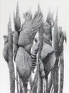 Hollyhocks and Bird